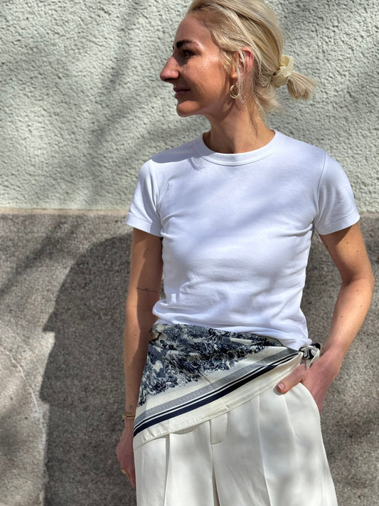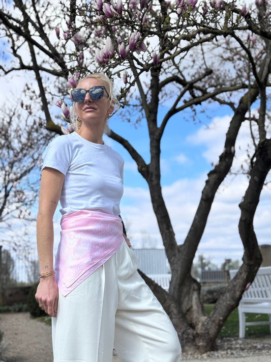 Die Art von Tuch, die einen Look sofort interessanter macht. Trag es als Halstuch, Bandana, Gürtel oder an der Tasche – für Outfits mit Stil, Leichtigkeit und genau dem richtigen Detail.
