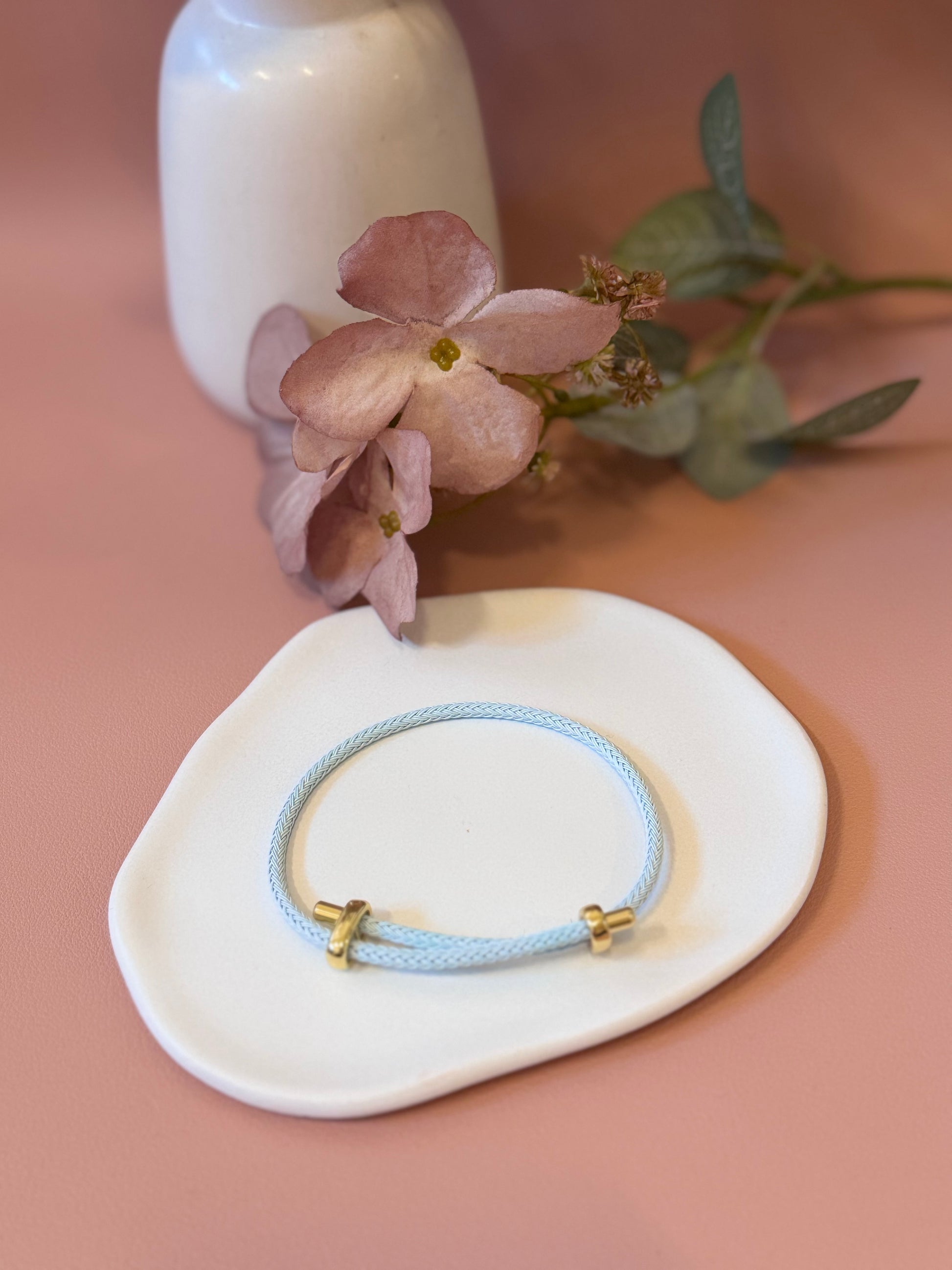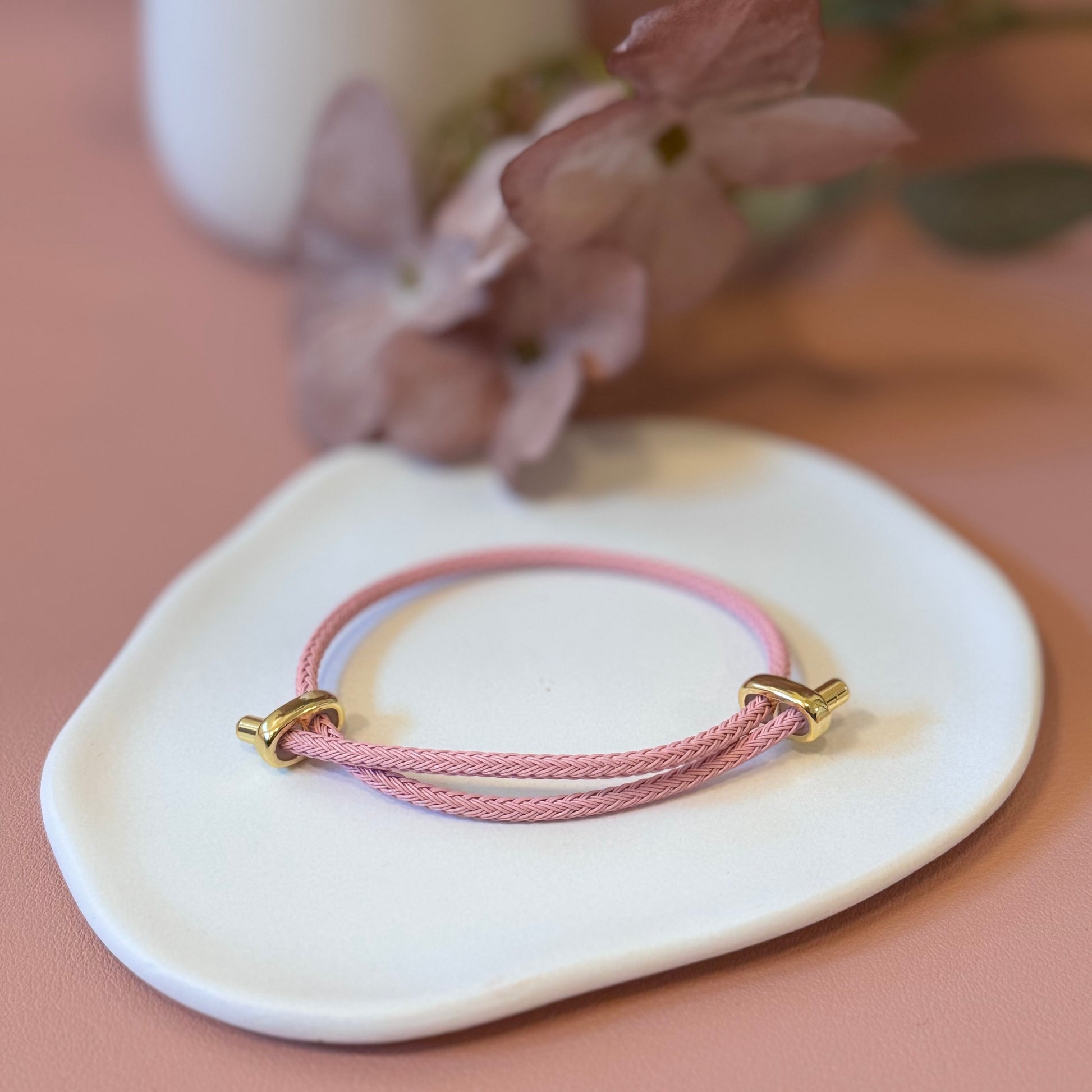 Feines, geflochtenes Edelstahlarmband in modernen Farben – flexibel, langlebig und individuell in der Größe anpassbar.