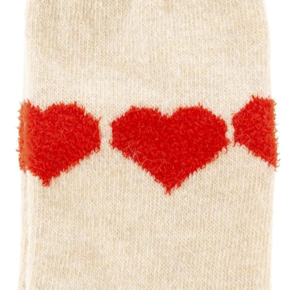 Kuschelsocken beige mit roten Herzen | warm & weich mit Wollanteil